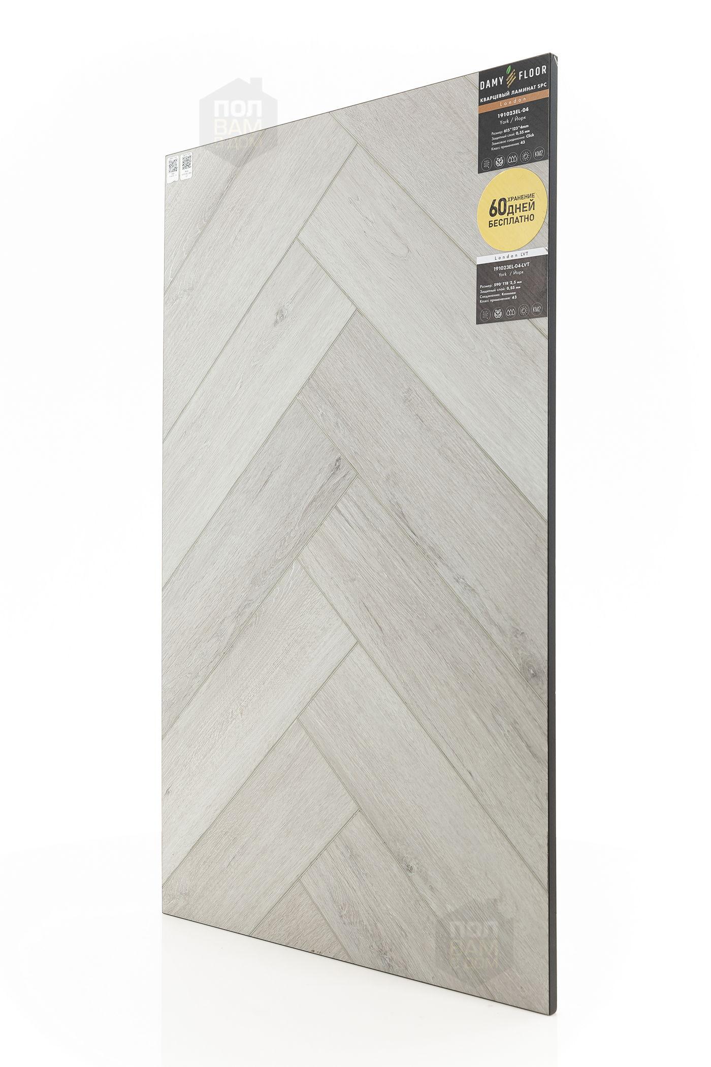 SPC ламинат Damy Floor Йорк 191023EL-04 - цена 2 899 руб. за квадратный метр. Это покрытие толщиной 4 мм, порода дерева - дуб, фаска с 4-х сторон. Тиснение поверхность SPC ламината имеет светлый оттенок и матовый блеск. Для того, чтобы купить в интернет-магазине SPC ламинат из коллекции Damy Floor London Йорк 191023EL-04, положите товар в корзину или свяжитесь с нами любым доступным способом. Товар есть в наличии.