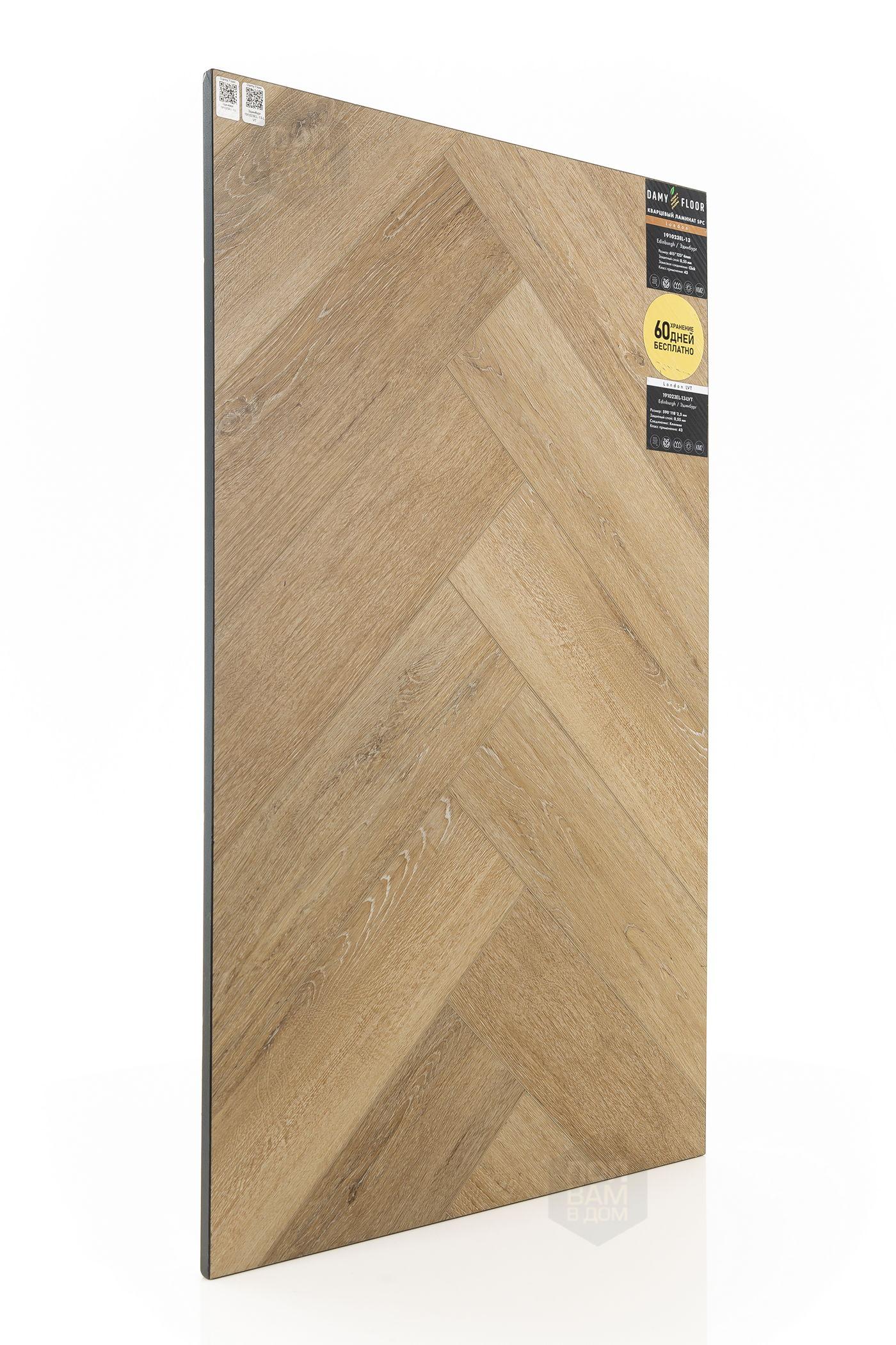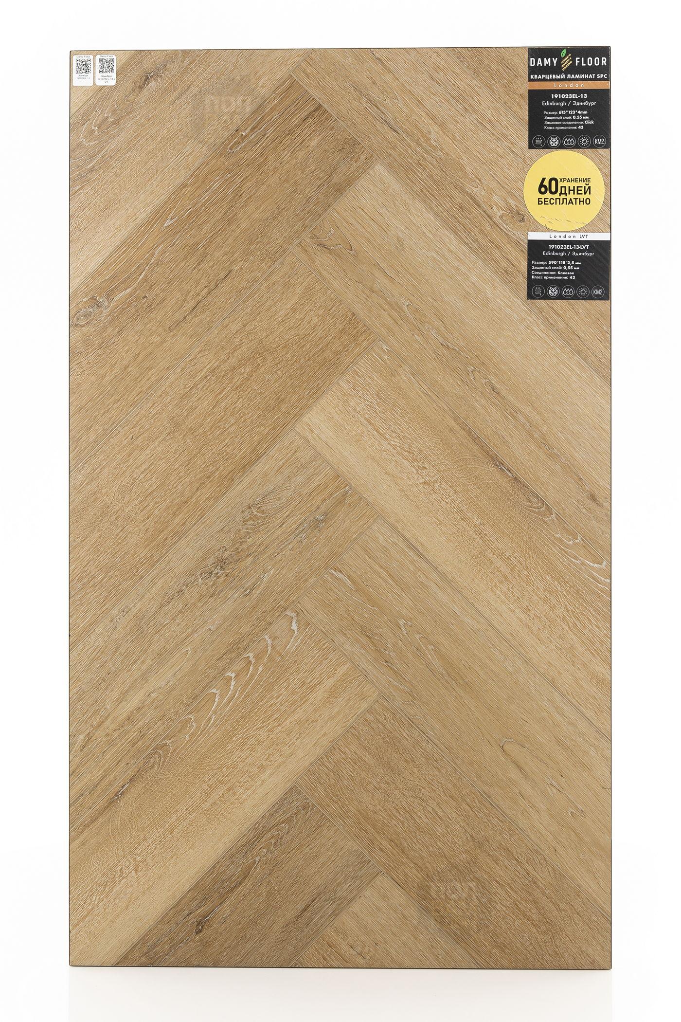 SPC ламинат Damy Floor Эдинбург 191023EL-13 - цена 2 899 руб. за квадратный метр. Это покрытие толщиной 4 мм, порода дерева - дуб, фаска с 4-х сторон. Тиснение поверхность SPC ламината имеет светлый оттенок и матовый блеск. Для того, чтобы купить в интернет-магазине SPC ламинат из коллекции Damy Floor London Эдинбург 191023EL-13, положите товар в корзину или свяжитесь с нами любым доступным способом. Товар есть в наличии.