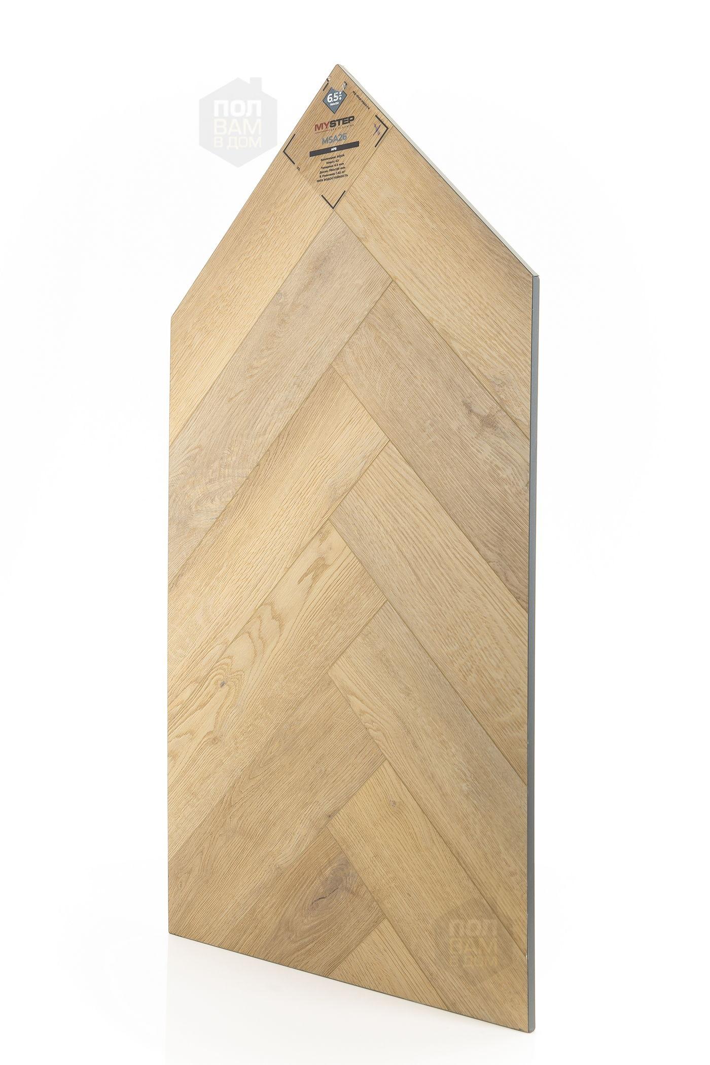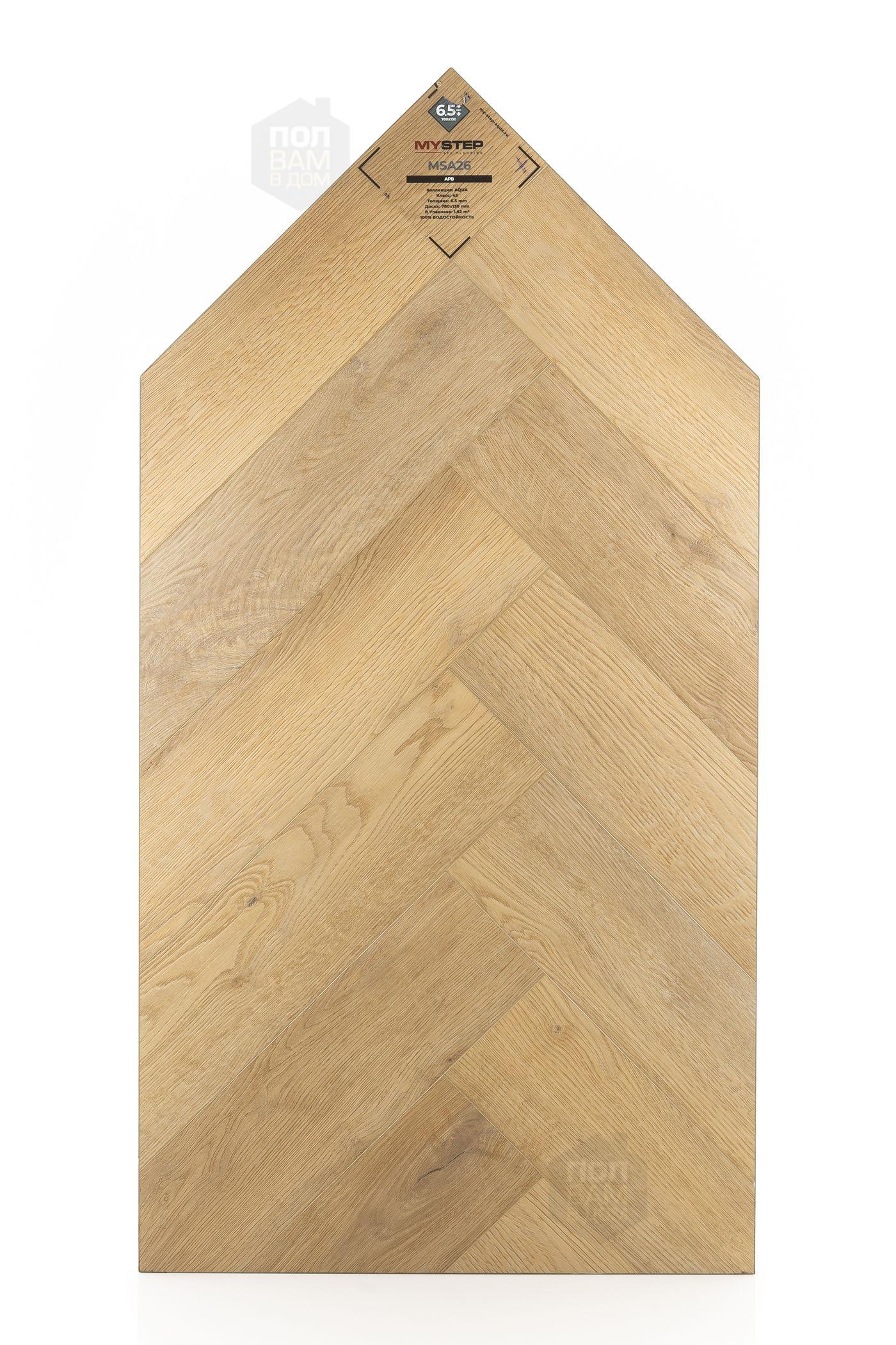 SPC ламинат My Step Арв MSA26 - цена 2 990 руб. за квадратный метр. Это покрытие толщиной 6,5 мм, порода дерева - дуб, фаска с 4-х сторон. Тиснение поверхность SPC ламината имеет светлый оттенок и матовый блеск. Для того, чтобы купить в интернет-магазине SPC ламинат из коллекции My Step Аква 6,5мм Арв MSA26, положите товар в корзину или свяжитесь с нами любым доступным способом. Товар есть в наличии.