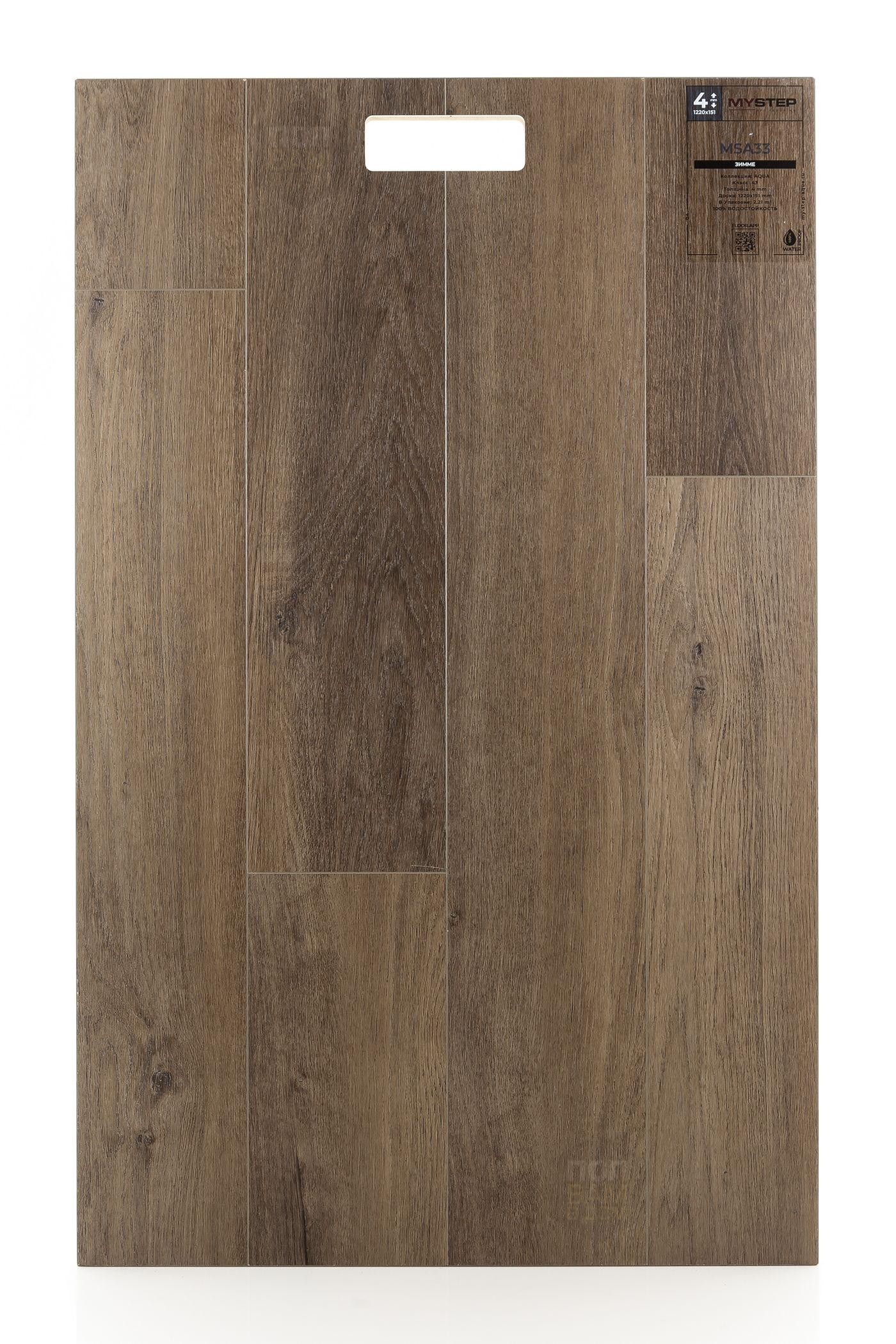 SPC ламинат My Step Зимме MSA33 - цена 2 590 руб. за квадратный метр. Это покрытие толщиной 4 мм, порода дерева - дуб, фаска с 4-х сторон. Тиснение поверхность SPC ламината имеет тёмный оттенок и матовый блеск. Для того, чтобы купить в интернет-магазине SPC ламинат из коллекции My Step Aqua 4mm Зимме MSA33, положите товар в корзину или свяжитесь с нами любым доступным способом. Товар есть в наличии.