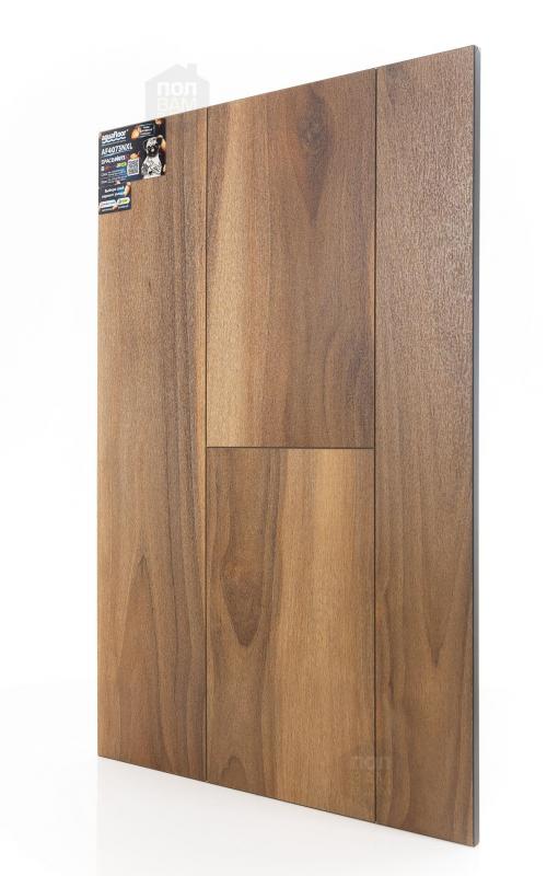 AquaFloor - 100% водостойкий ламинат производства Бельгия. Главным преимуществом является влагостойкая композитная ПВХ плита в основании, которая вообще не впитывает влагу. Это даёт возможность использовать это покрытие в помещениях с прямым контактом с водой. Природные декоры ламината AquaFloor сделают дизайн Вашего интерьера неповторимым, а 100% влагостойкие свойства позволят значительно расширить его применение и использовать там, где обычный ламинат не прослужит долго.