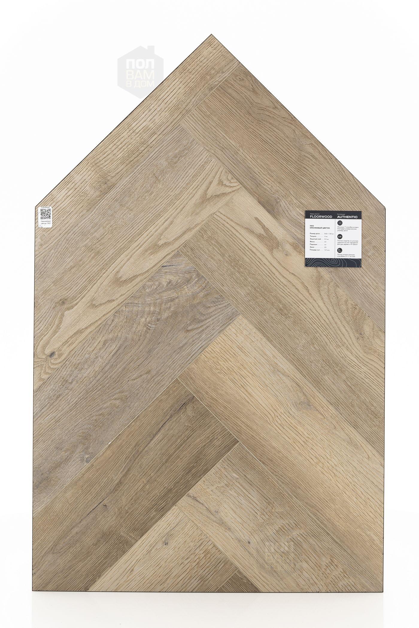 SPC ламинат Floorwood Оранжевый цветок 1502 - цена 2 448 руб. за квадратный метр. Это покрытие толщиной 4 мм, порода дерева - дуб, фаска с 4-х сторон. Тиснение поверхность SPC ламината имеет светлый оттенок и матовый блеск. Для того, чтобы купить в интернет-магазине SPC ламинат из коллекции Floorwood Authentic Оранжевый цветок 1502, положите товар в корзину или свяжитесь с нами любым доступным способом. Товар есть в наличии.