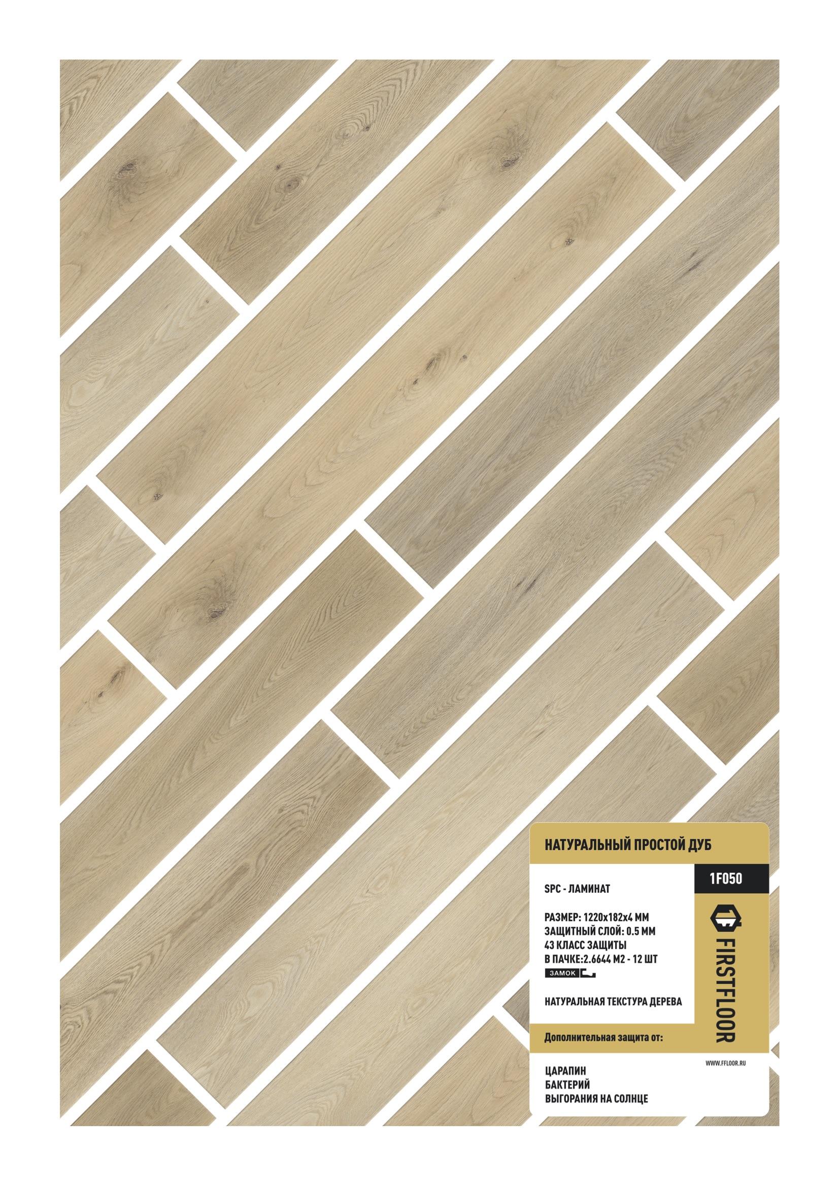 SPC ламинат FirstFloor Натуральный простой дуб 1F050
