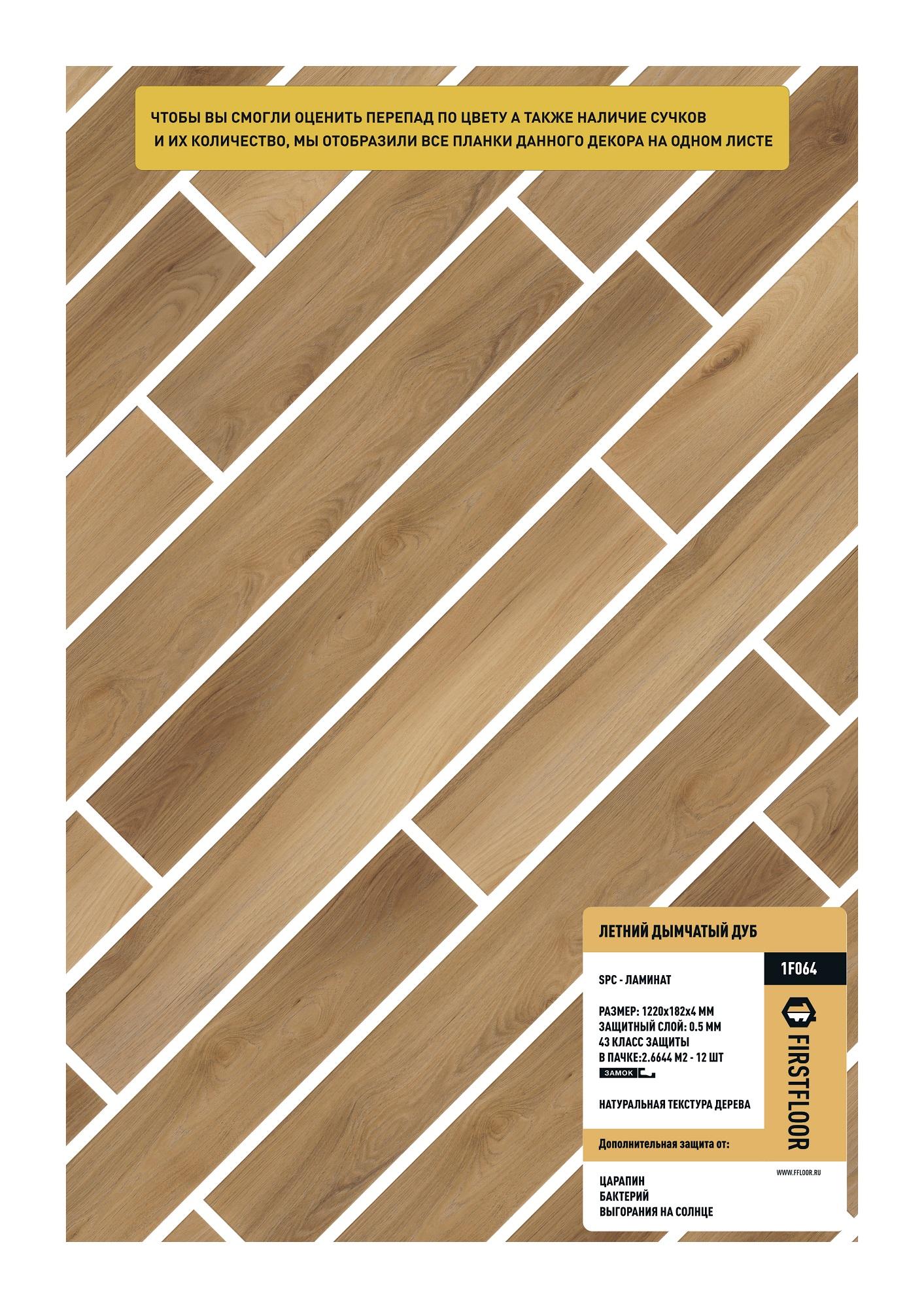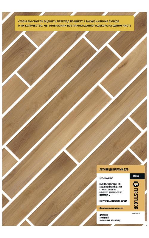 SPC ламинат FirstFloor — разрабатывался специально для стран Европы и Америки и имеет большую популярность на этих континентах. Более 20 лет насчитывает история его успешных продаж и эксплуатации. Ежегодно производится и продается более 100 000 000 квадратных метров. Теперь этот продукт можно приобрести и у нас. Идеальное сочетание характеристик, пользовательских качеств и одновременно элегантности в совокупности с ценой, делают наш SPC ламинат максимально привлекательным к покупке. Его поверхность словно дерево, а устойчивость к нагрузкам — как у камня. С классом износостойкости 43, он способен противостоять даже самым интенсивным воздействиям. его можно использовать во всех бытовых помещениях без исключения. Гарантия на 20 лет подчеркивает наше доверие в надежность и качество этого покрытия.