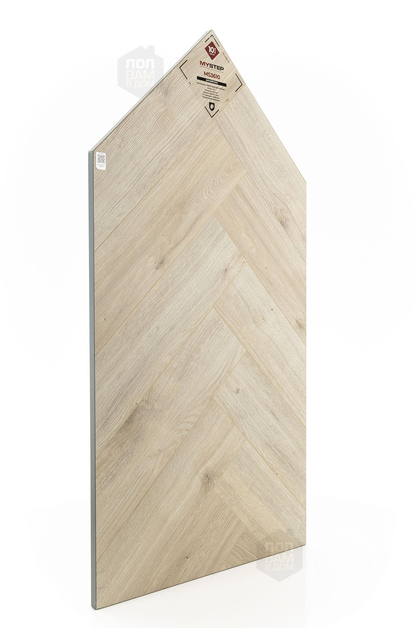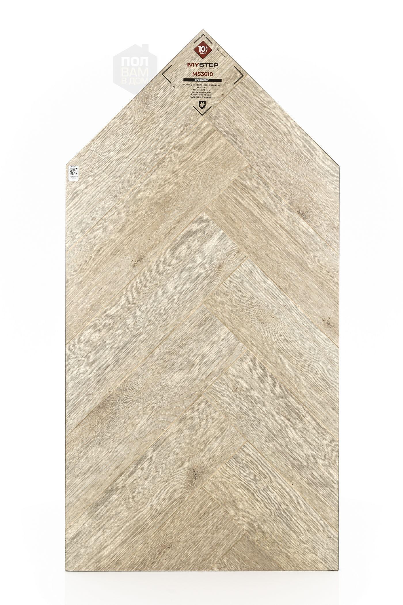 Ламинат My Step Дуб Кейптаун MS3610 - цена 4 390 руб. за квадратный метр. Это покрытие толщиной 10 мм, порода дерева - дуб, фаска с 4-х сторон. Брашированная поверхность ламината имеет светлый оттенок и матовый блеск. Для того, чтобы купить в интернет-магазине ламинат из коллекции My Step Херрингбон Манор+ Дуб Кейптаун MS3610, положите товар в корзину или свяжитесь с нами любым доступным способом. Товар есть в наличии.