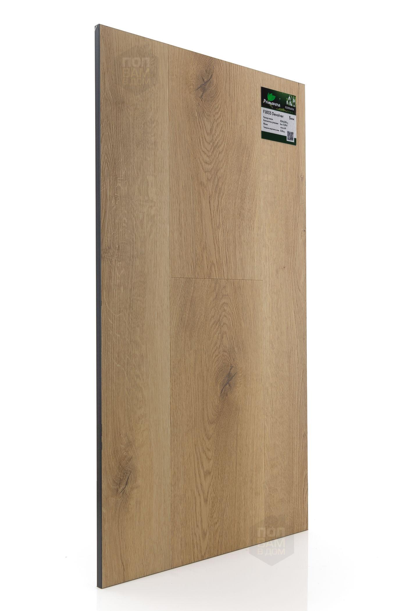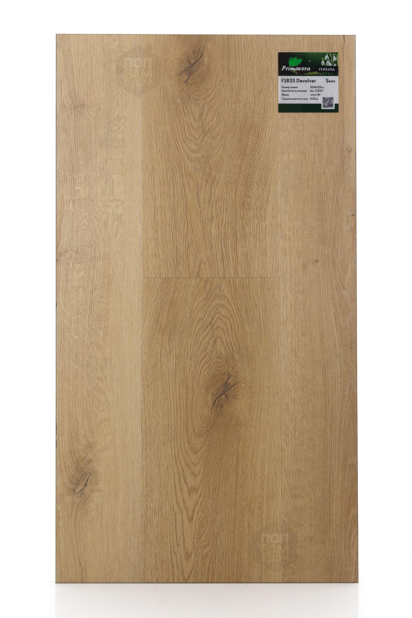 SPC ламинат Primavera Devolver F1833 - цена 3 160 руб. за квадратный метр. Это покрытие толщиной 5 мм, порода дерева - дуб, фаска с 4-х сторон. Тиснение поверхность SPC ламината имеет светлый оттенок и матовый блеск. Для того, чтобы купить в интернет-магазине SPC ламинат из коллекции Primavera Ferrara Devolver F1833, положите товар в корзину или свяжитесь с нами любым доступным способом. Товар есть в наличии.