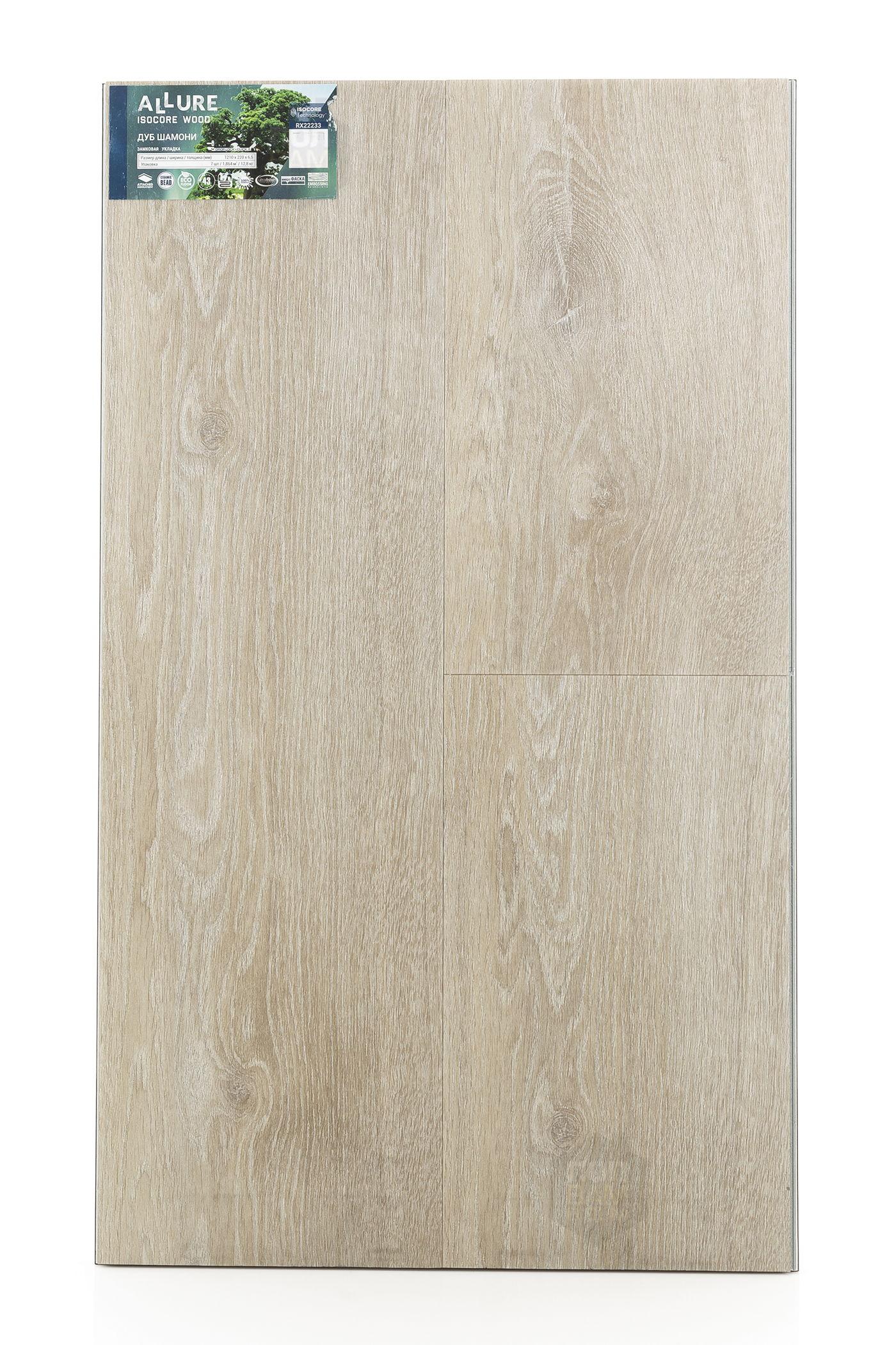 SPC ламинат Allure Vinilam Дуб Шамони RX22233 - цена 4 299 руб. за квадратный метр. Это покрытие толщиной 6,5 мм, порода дерева - дуб, фаска с 4-х сторон. Брашированная поверхность SPC ламината имеет светлый оттенок и матовый блеск. Для того, чтобы купить в интернет-магазине SPC ламинат из коллекции Allure Vinilam Isocore Wood Дуб Шамони RX22233, положите товар в корзину или свяжитесь с нами любым доступным способом. Товар есть в наличии.