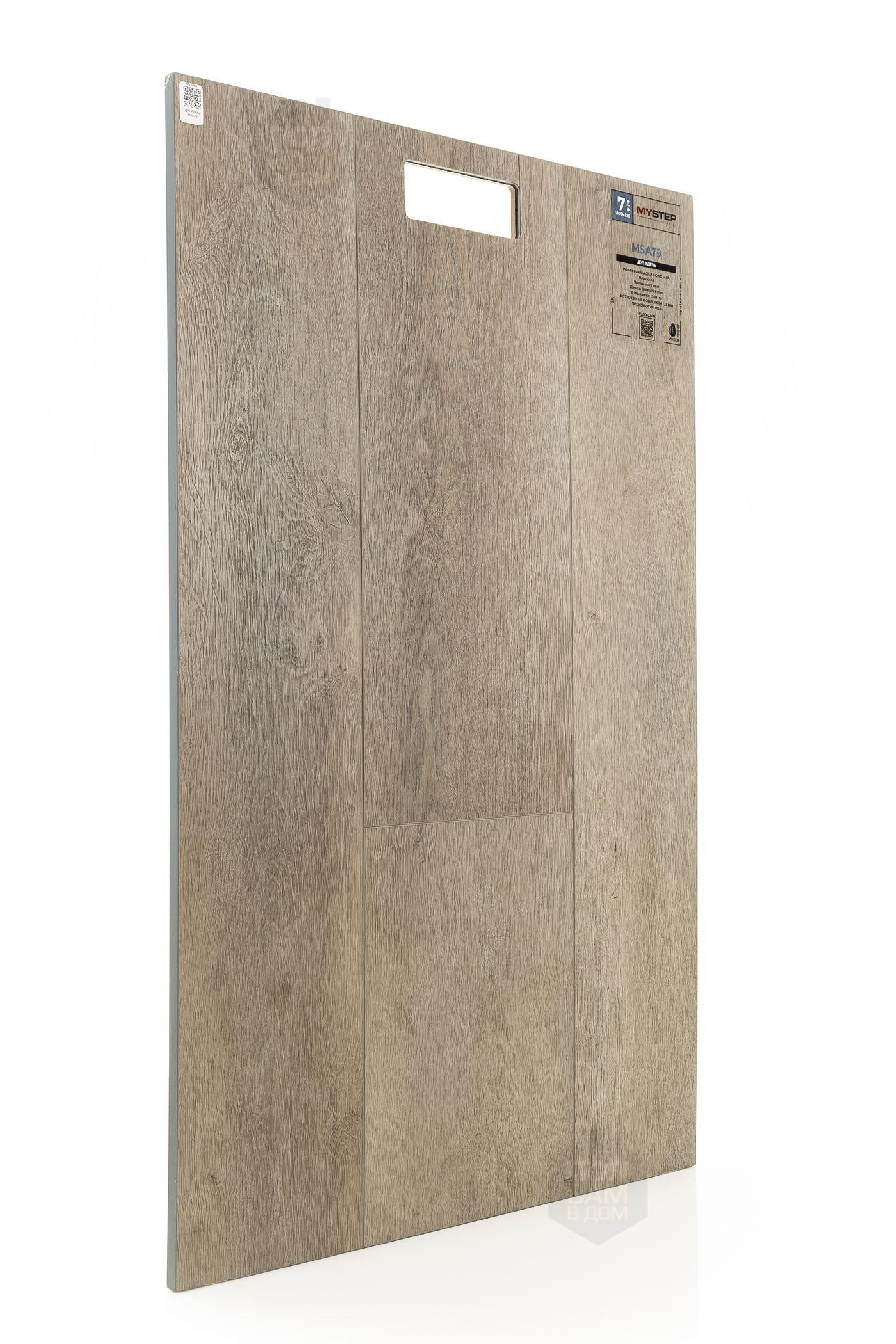 SPC ламинат My Step Дуб Идель MSA79 - цена 4 490 руб. за квадратный метр. Это покрытие толщиной 7 мм, порода дерева - дуб, фаска с 4-х сторон. Тиснение поверхность SPC ламината имеет тёмный оттенок и матовый блеск. Для того, чтобы купить в интернет-магазине SPC ламинат из коллекции My Step Аква Лонг АВА Дуб Идель MSA79, положите товар в корзину или свяжитесь с нами любым доступным способом. Товар есть в наличии.