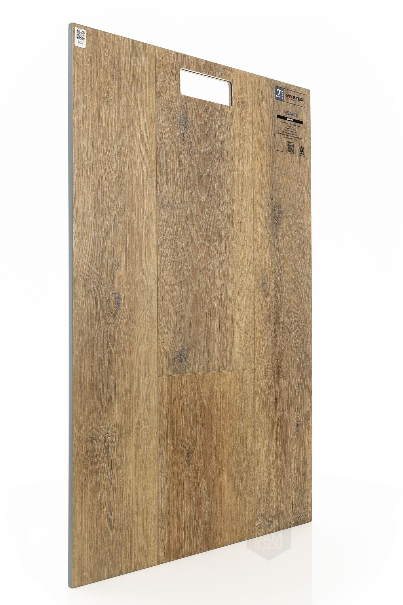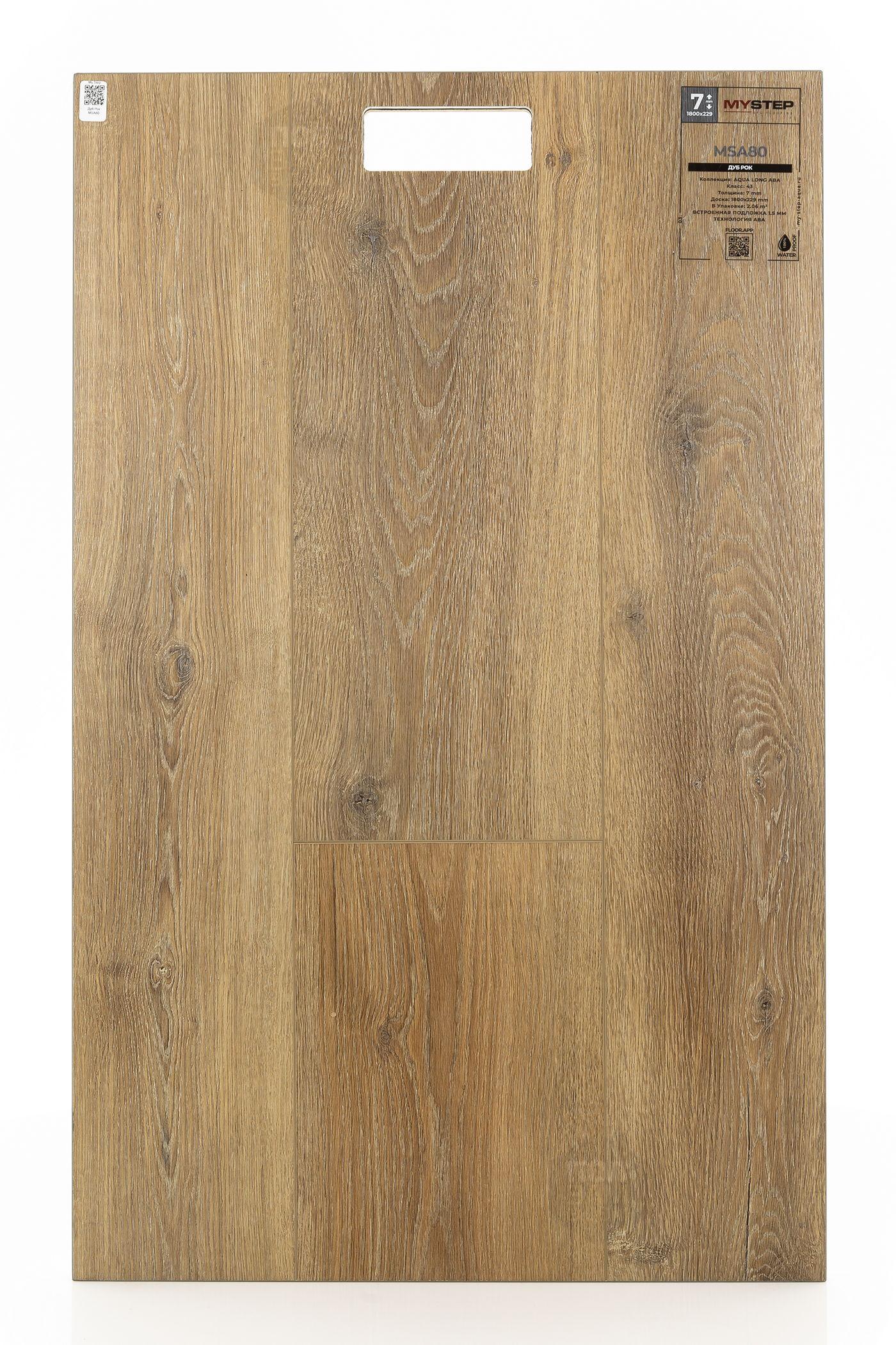 SPC ламинат My Step Дуб Рок MSA80 - цена 4 490 руб. за квадратный метр. Это покрытие толщиной 7 мм, порода дерева - дуб, фаска с 4-х сторон. Тиснение поверхность SPC ламината имеет светлый оттенок и матовый блеск. Для того, чтобы купить в интернет-магазине SPC ламинат из коллекции My Step Аква Лонг АВА Дуб Рок MSA80, положите товар в корзину или свяжитесь с нами любым доступным способом. Товар есть в наличии.