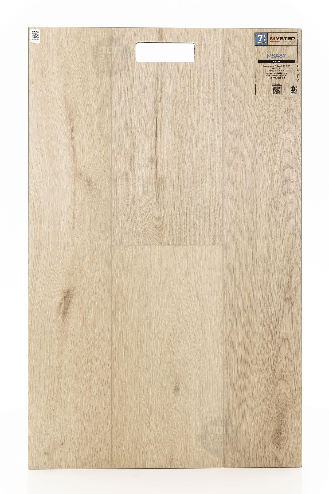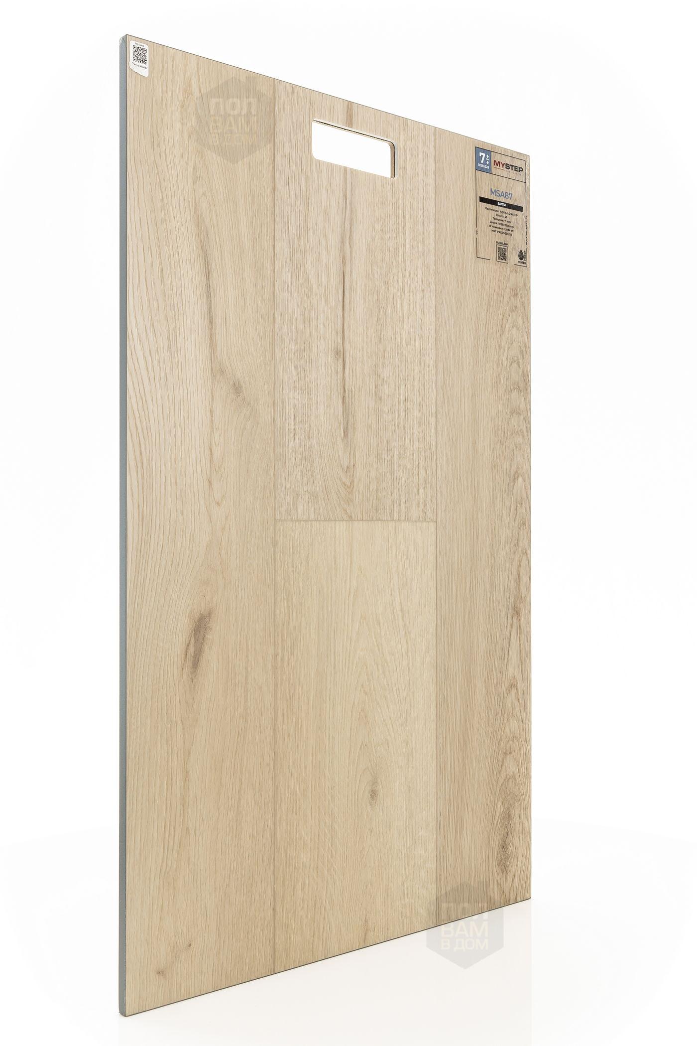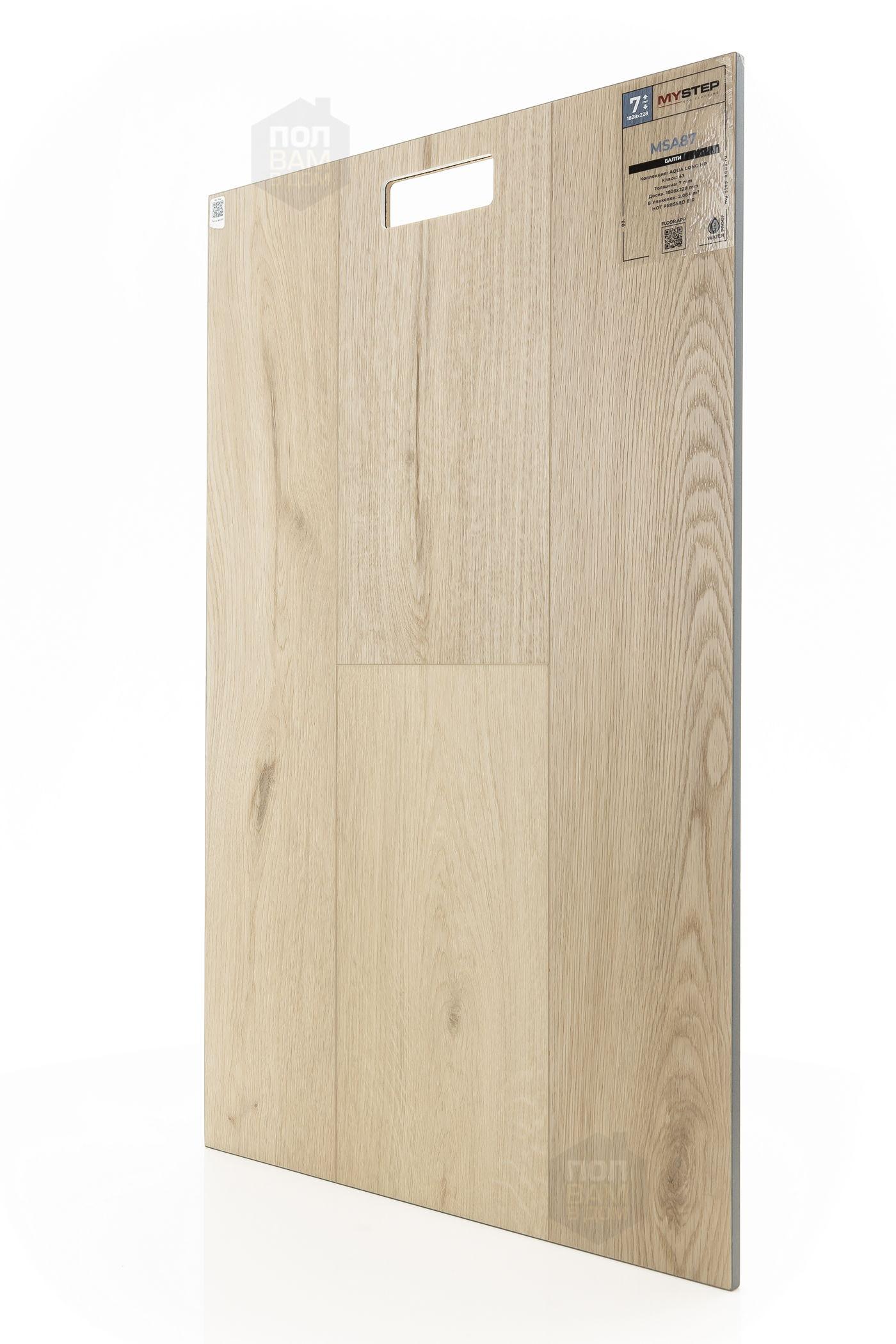 SPC ламинат My Step Балти MSA87 - цена 4 790 руб. за квадратный метр. Это покрытие толщиной 7 мм, порода дерева - дуб, фаска с 4-х сторон. Тиснение поверхность SPC ламината имеет светлый оттенок и матовый блеск. Для того, чтобы купить в интернет-магазине SPC ламинат из коллекции My Step Аква Лонг НР Балти MSA87, положите товар в корзину или свяжитесь с нами любым доступным способом. Товар есть в наличии.