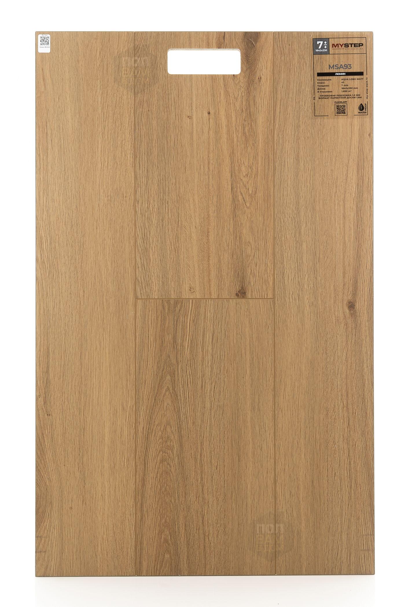 SPC ламинат My Step Люмин MSA93 - цена 4 990 руб. за квадратный метр. Это покрытие толщиной 7 мм, порода дерева - дуб, фаска с 4-х сторон. Тиснение поверхность SPC ламината имеет светлый оттенок и ультраматовый блеск. Для того, чтобы купить в интернет-магазине SPC ламинат из коллекции My Step Аква Лонг Матт Люмин MSA93, положите товар в корзину или свяжитесь с нами любым доступным способом. Товар есть в наличии.