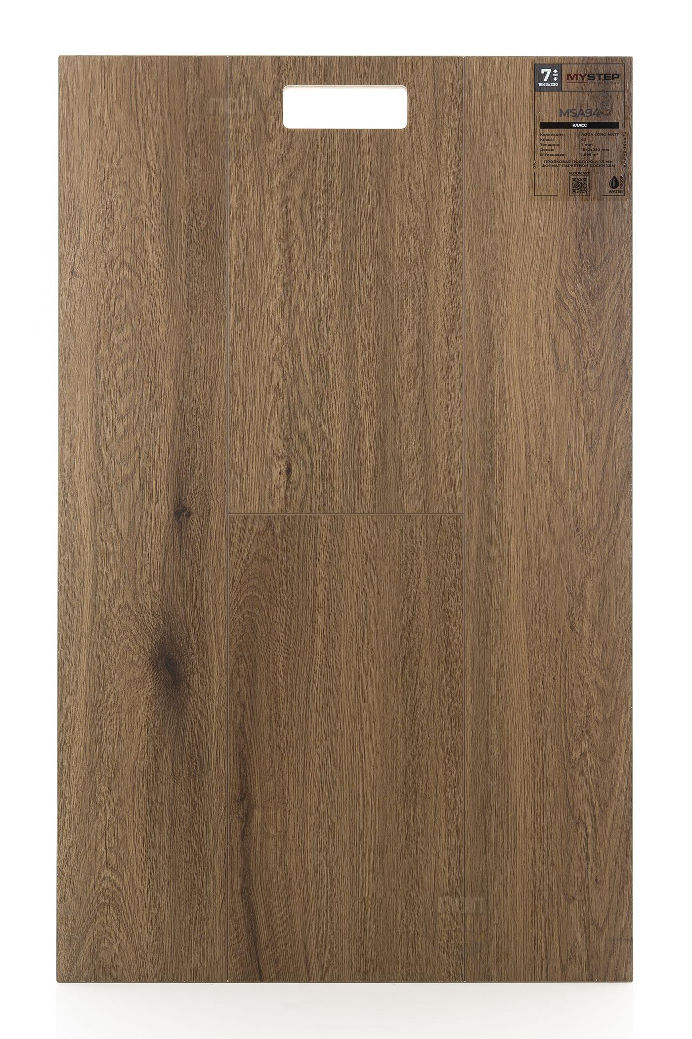 SPC ламинат My Step Класс MSA94 - цена 4 990 руб. за квадратный метр. Это покрытие толщиной 7 мм, порода дерева - дуб, фаска с 4-х сторон. Тиснение поверхность SPC ламината имеет тёмный оттенок и ультраматовый блеск. Для того, чтобы купить в интернет-магазине SPC ламинат из коллекции My Step Аква Лонг Матт Класс MSA94, положите товар в корзину или свяжитесь с нами любым доступным способом. Товар есть в наличии.