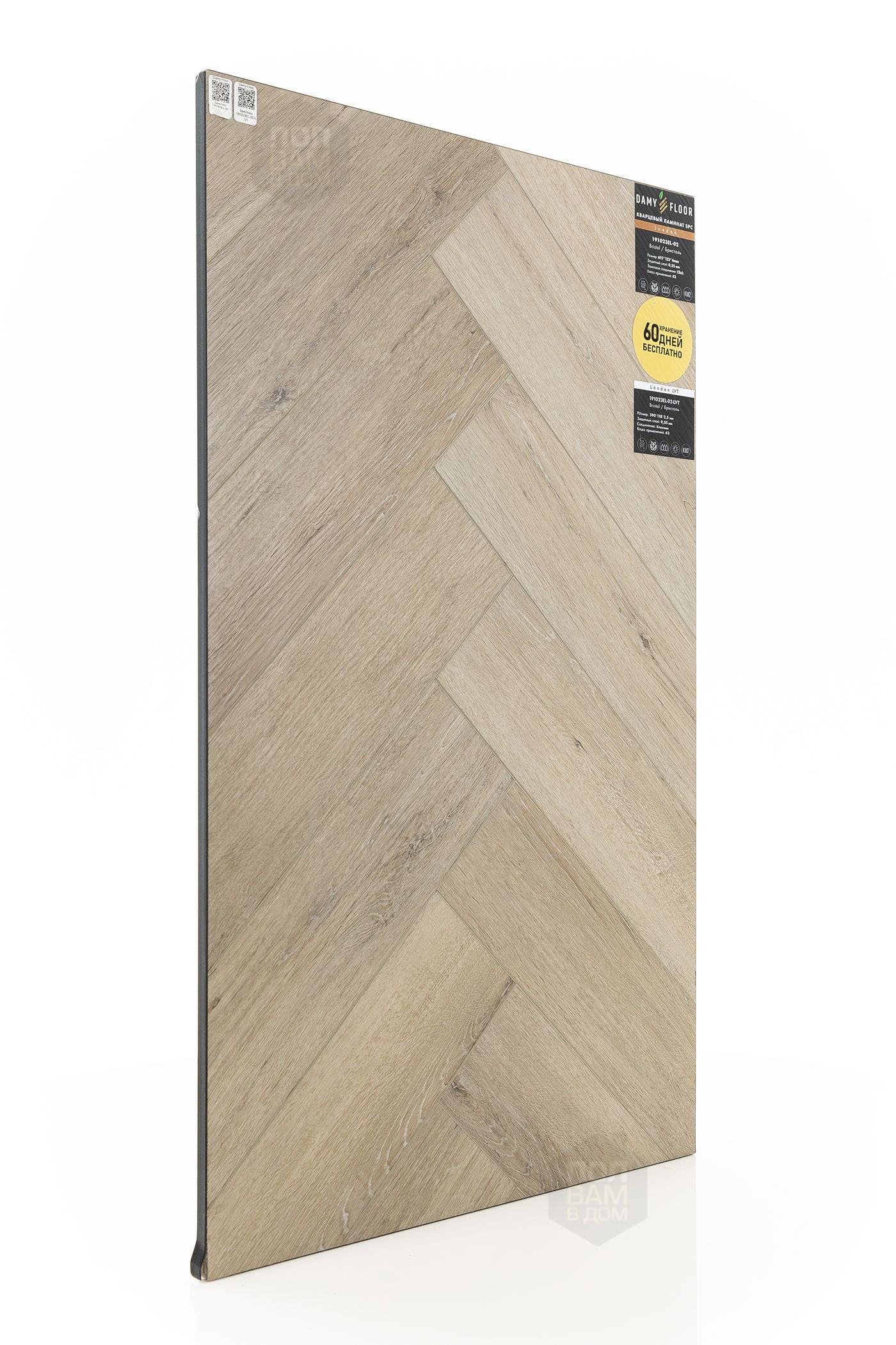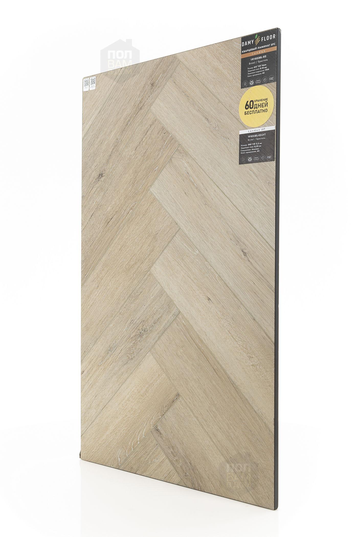 Виниловый ламинат Damy Floor Бристоль 191023EL-02-LVT - цена 2 399 руб. за квадратный метр. Это покрытие толщиной 2,5 мм, порода дерева - дуб, фаска с 4-х сторон. Брашированная поверхность винилового пола имеет светлый оттенок и матовый блеск. Для того, чтобы купить в интернет-магазине виниловый ламинат из коллекции Damy Floor London LVT Бристоль 191023EL-02-LVT, положите товар в корзину или свяжитесь с нами любым доступным способом. Товар есть в наличии.