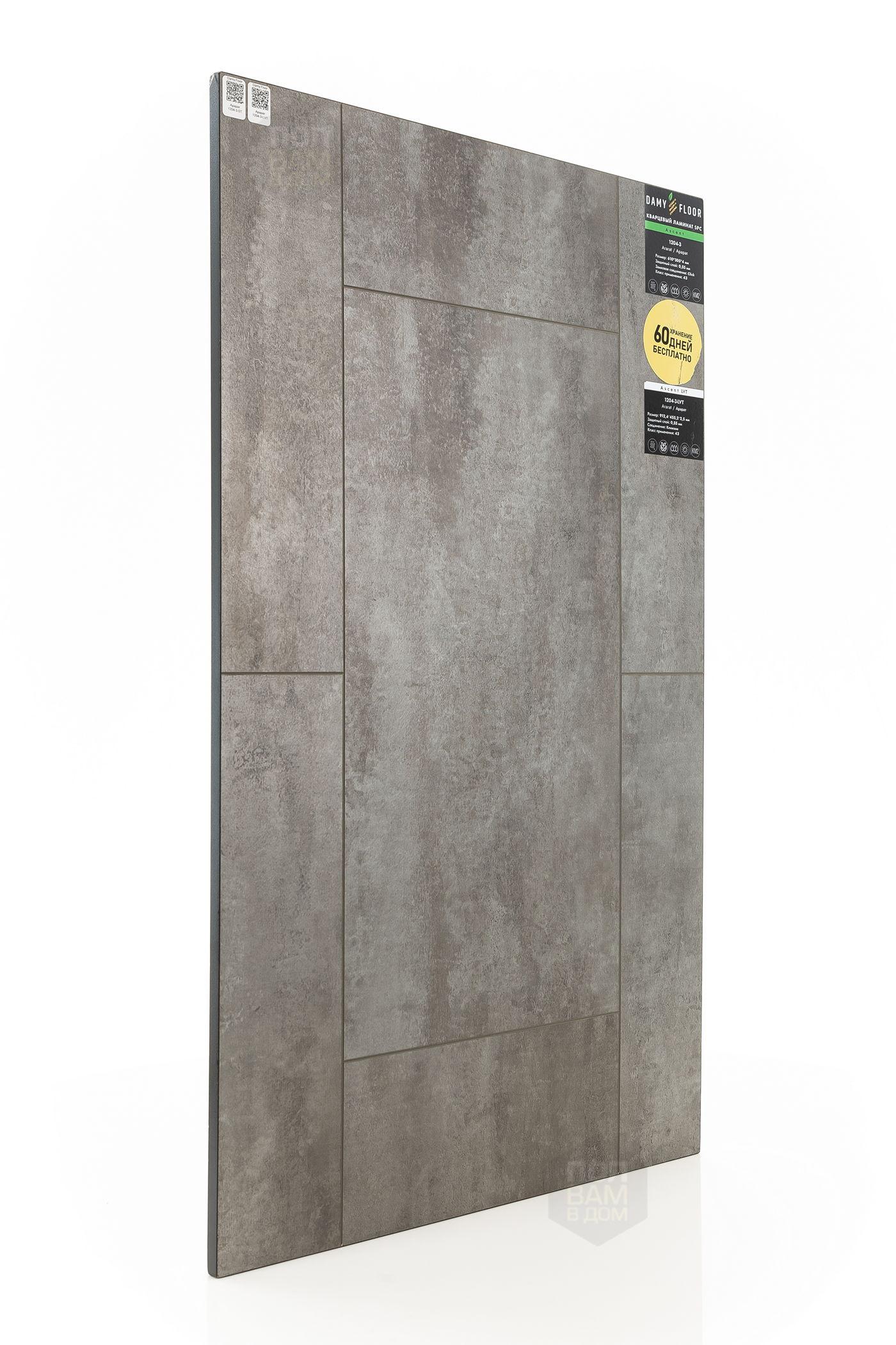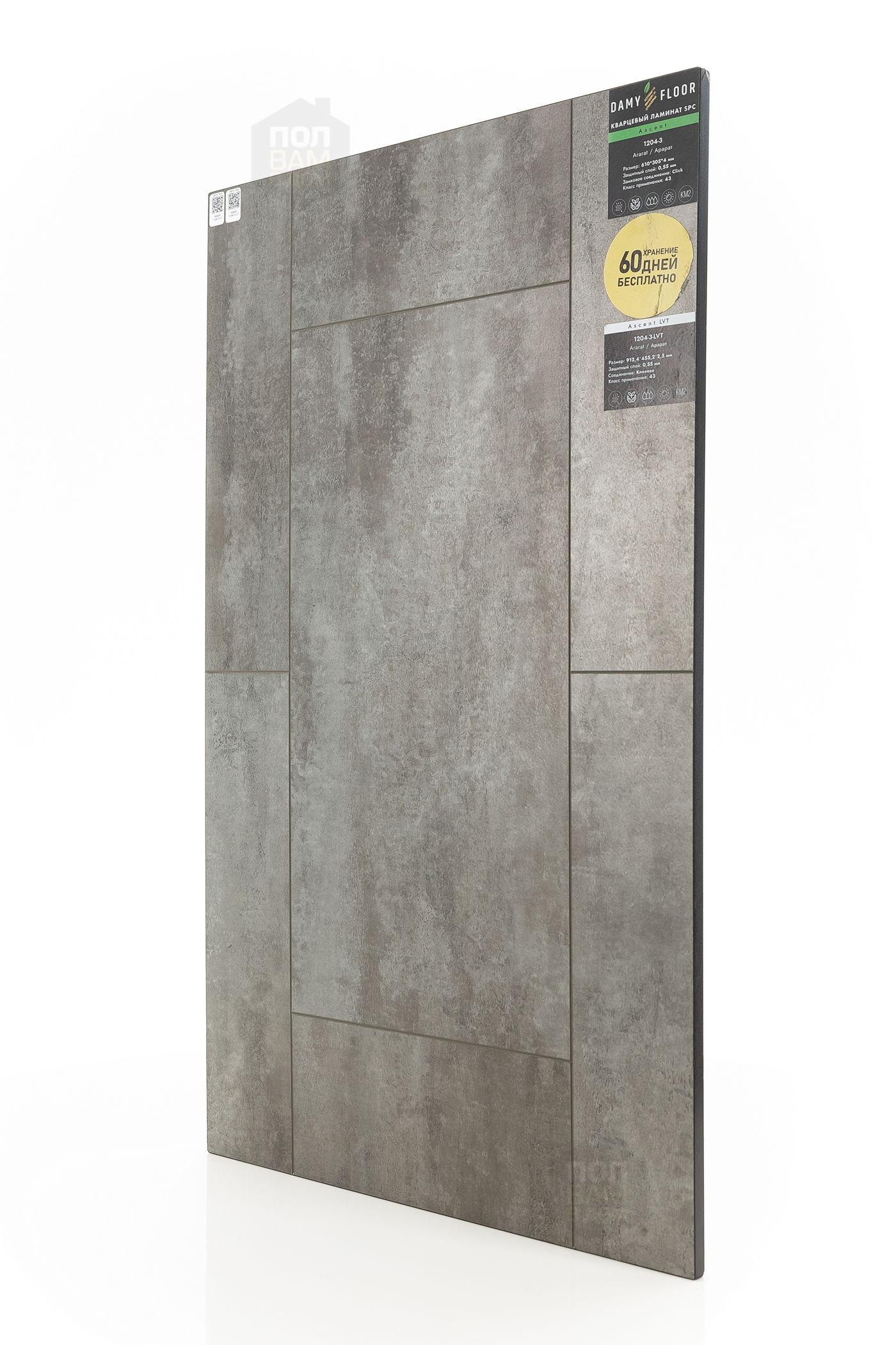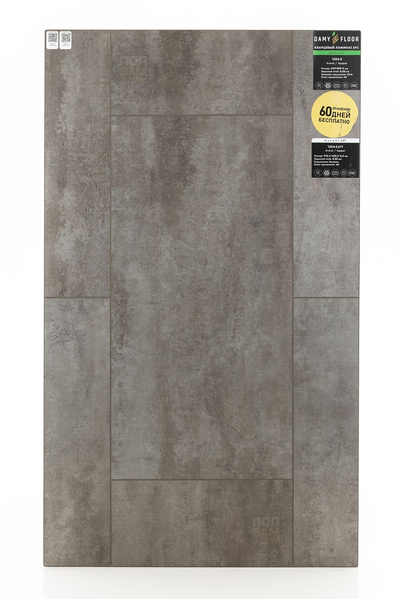 Виниловый ламинат Damy Floor Арарат 1204-3-LVT - цена 2 299 руб. за квадратный метр. Это покрытие толщиной 2,5 мм, фаска с 4-х сторон. Тиснение поверхность винилового пола имеет тёмный оттенок и матовый блеск. Для того, чтобы купить в интернет-магазине виниловый ламинат из коллекции Damy Floor Ascent LVT Арарат 1204-3-LVT, положите товар в корзину или свяжитесь с нами любым доступным способом. Товар есть в наличии.