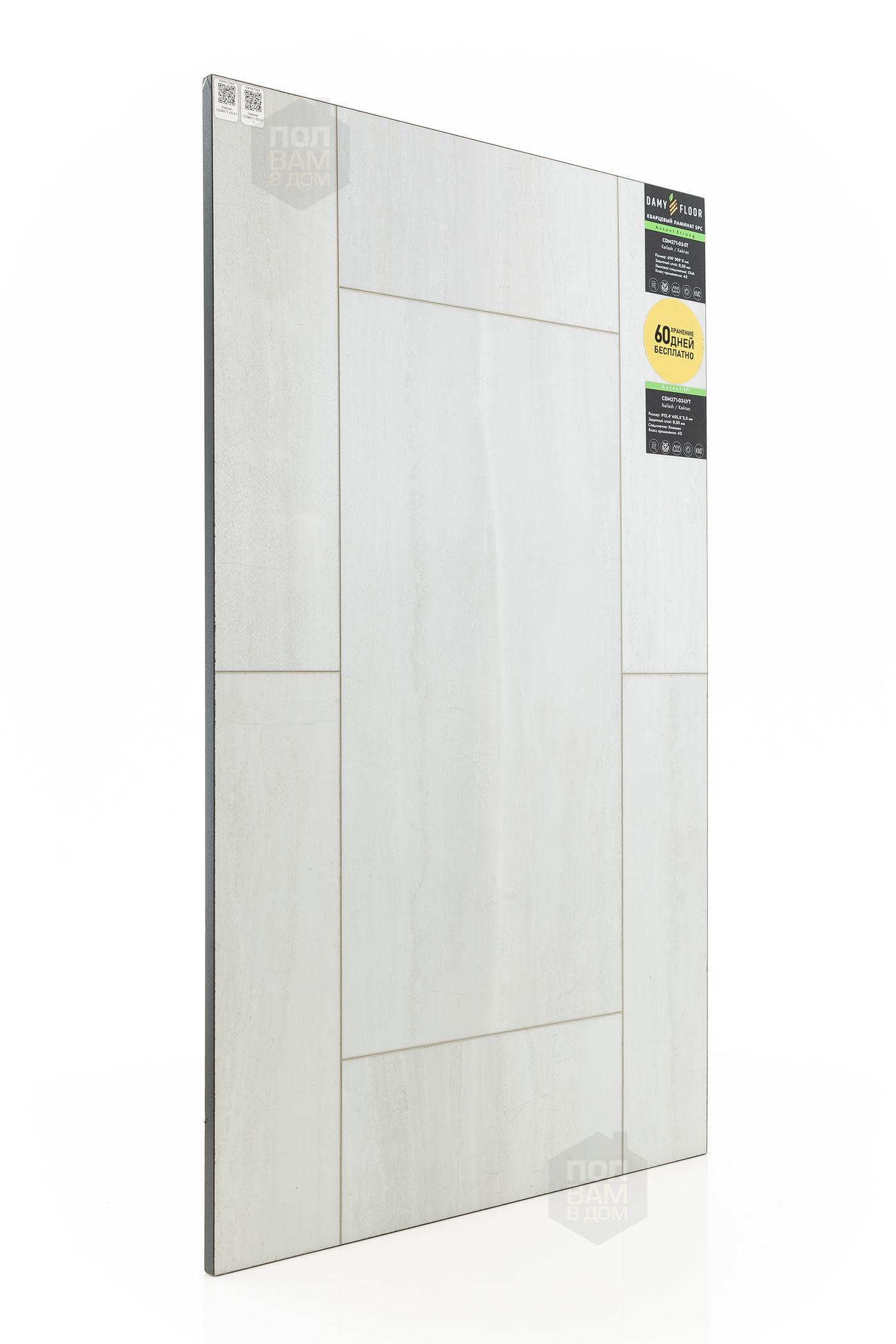 SPC ламинат Damy Floor Кайлас CDM271-03-ST - цена 2 999 руб. за квадратный метр. Это покрытие толщиной 5 мм, фаска с 4-х сторон. Гладкая поверхность SPC ламината имеет светлый оттенок и матовый блеск. Для того, чтобы купить в интернет-магазине SPC ламинат из коллекции Damy Floor Ascent Strong Кайлас CDM271-03-ST, положите товар в корзину или свяжитесь с нами любым доступным способом. Товар есть в наличии.