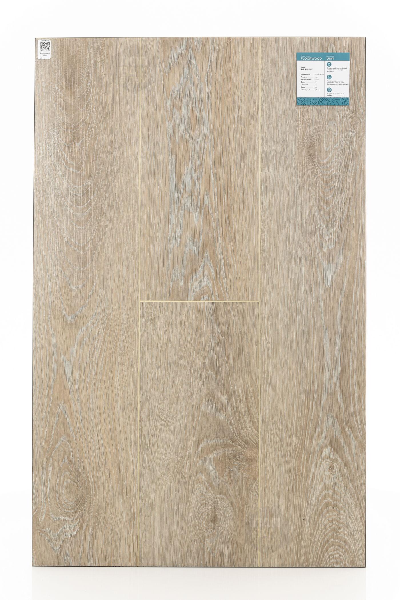 SPC ламинат Floorwood Дуб Шиммер 3955 - цена 2 193 руб. за квадратный метр. Это покрытие толщиной 4 мм, порода дерева - дуб, фаска с 4-х сторон. Тиснение поверхность SPC ламината имеет светлый оттенок и матовый блеск. Для того, чтобы купить в интернет-магазине SPC ламинат из коллекции Floorwood Unit Дуб Шиммер 3955, положите товар в корзину или свяжитесь с нами любым доступным способом. Товар есть в наличии.