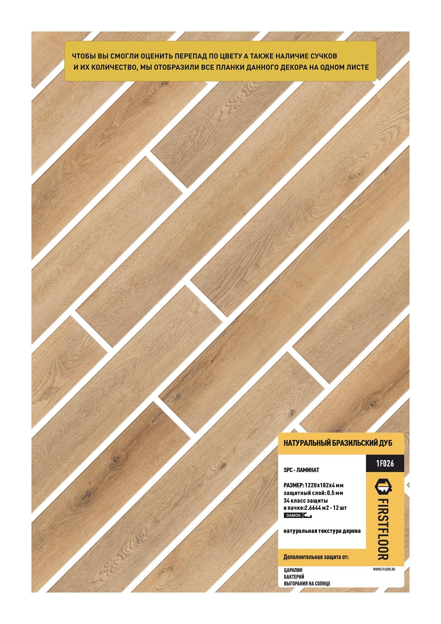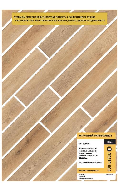 SPC ламинат FirstFloor Натуральный бразильский дуб 1F026
