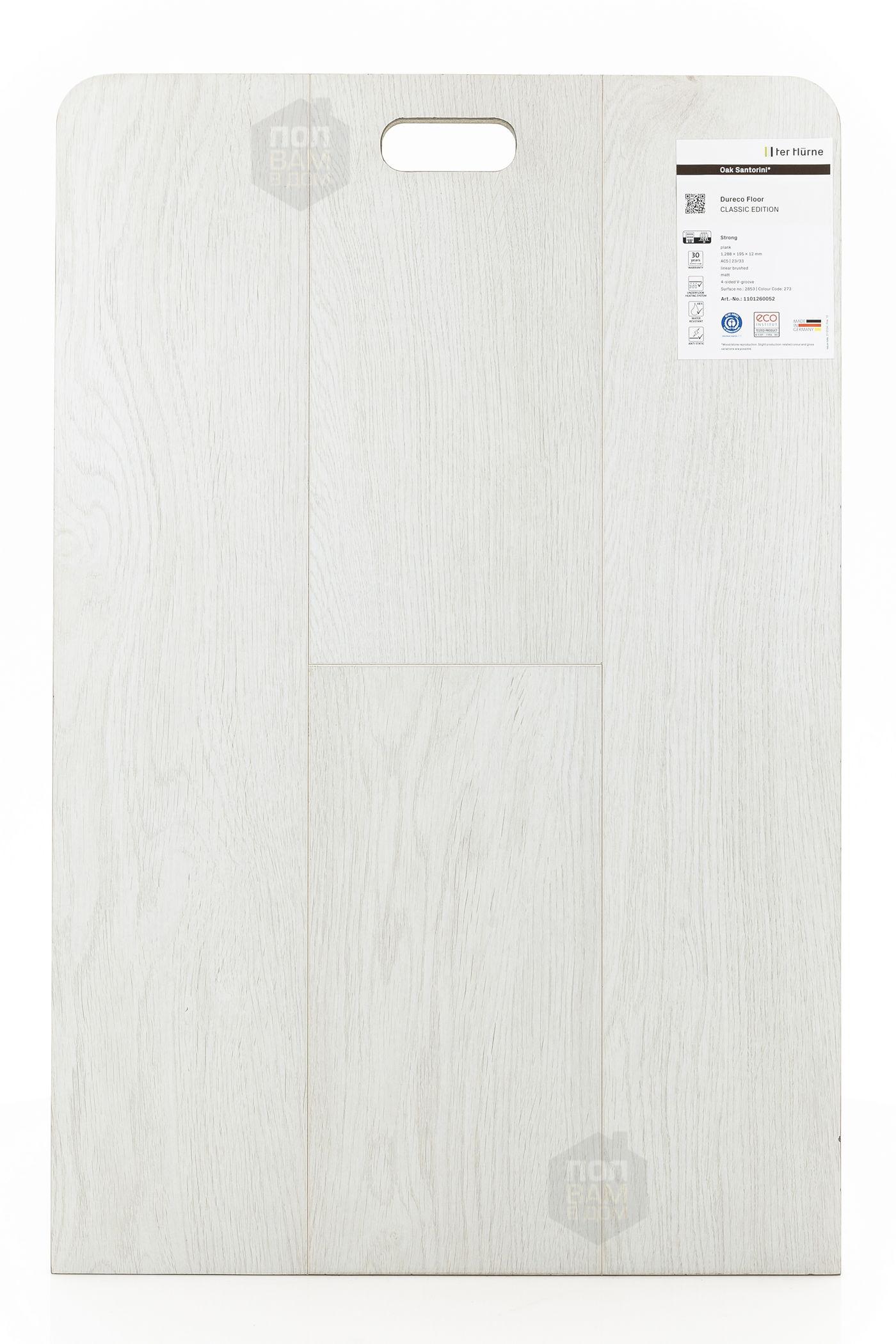 Ламинат Dureco Дуб Santorini 2852 - цена 4 650 руб. за квадратный метр. Это покрытие толщиной 12 мм, порода дерева - дуб, фаска с 4-х сторон. Брашированная поверхность ламината имеет светлый оттенок и матовый блеск. Для того, чтобы купить в интернет-магазине ламинат из коллекции Dureco Classic Line Дуб Santorini 2852, положите товар в корзину или свяжитесь с нами любым доступным способом. Привезем под заказ до 1 мес.