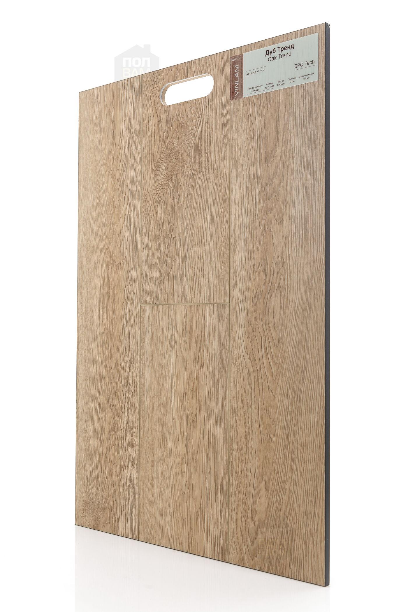 SPC ламинат Novafloor Дуб Тренд NF-45 - цена 2 090 руб. за квадратный метр. Это покрытие толщиной 4 мм, порода дерева - дуб, фаска с 4-х сторон. Тиснение поверхность SPC ламината имеет светлый оттенок и матовый блеск. Для того, чтобы купить в интернет-магазине SPC ламинат из коллекции Novafloor Vinlam Дуб Тренд NF-45, положите товар в корзину или свяжитесь с нами любым доступным способом. Товар есть в наличии.