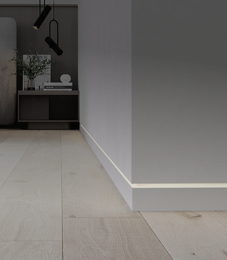Под брендом выпускаются: готовый белый напольный плинтус из МДФ, плинтус под покраску, цветной плинтус из МДФ, плинтусы с древесными текстурами, скрытый плинтус и теневые профили, микроплинтус для пола.